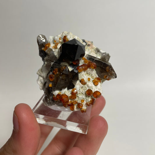 Smoky Quartz and Spessartine Specimen from Wushan Mine, China
