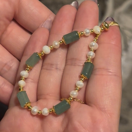 Jade and Freshwater Pearl Bolo Bracelet