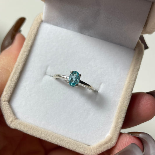Blue Apatite Sterling Silver Ring (Size 5,6,7,8,10)