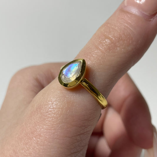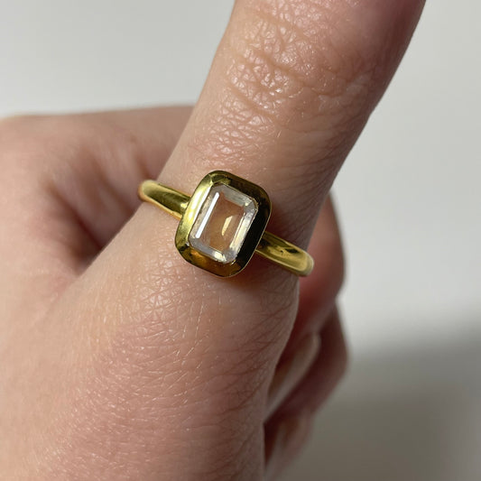 Gold Plated Faceted Rainbow Moonstone Ring (Size 8)