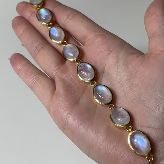 Gold Plated Rainbow Moonstone Toggle Clasp Bracelet