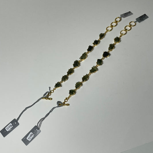 Gold Plated Moldavite Toggle Clasp Bracelet: You Choose