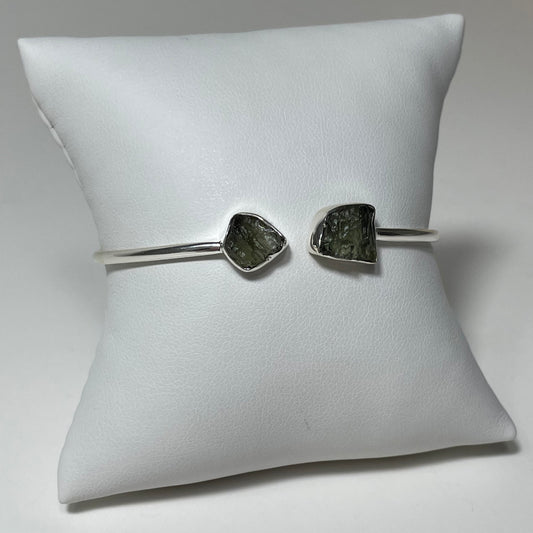 Moldavite and Libyan Desert Sterling Silver Toggle Bracelet