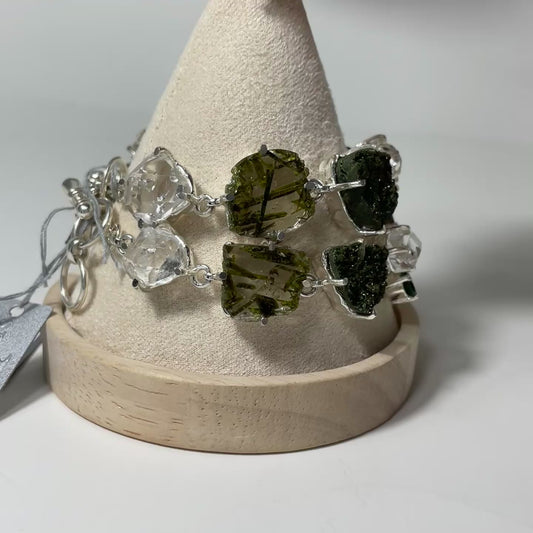 Moldavite, Herkimer, and Libyan Desert Sterling Silver Toggle Bracelet